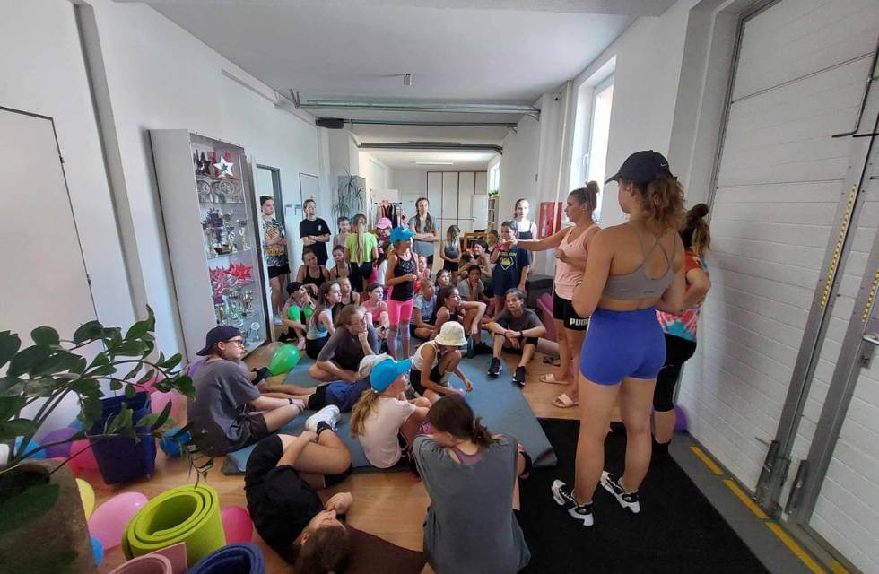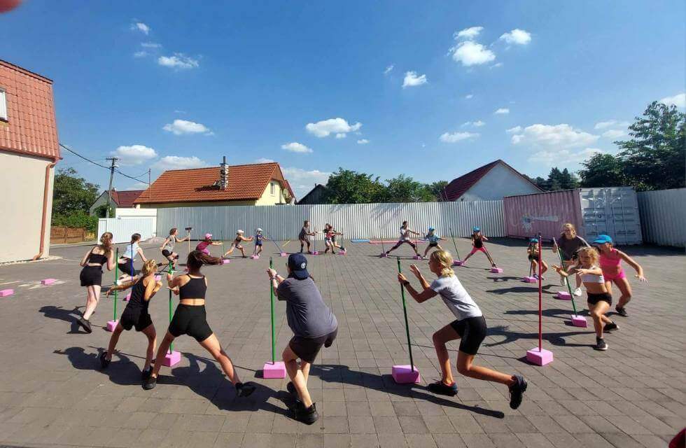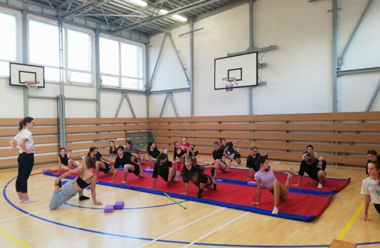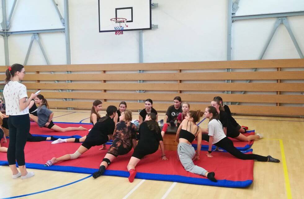 Môžete si pozrieť menšiu ukážku hodiny akrobacie s našim trénerom.